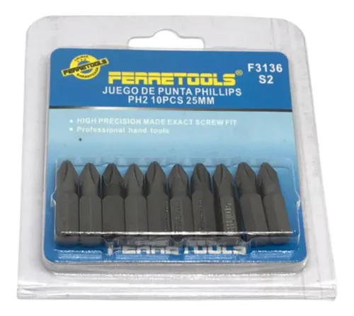 JUEGO PUNTA PHILLIPS PH2 10PCS 25MM FERRETOOLS